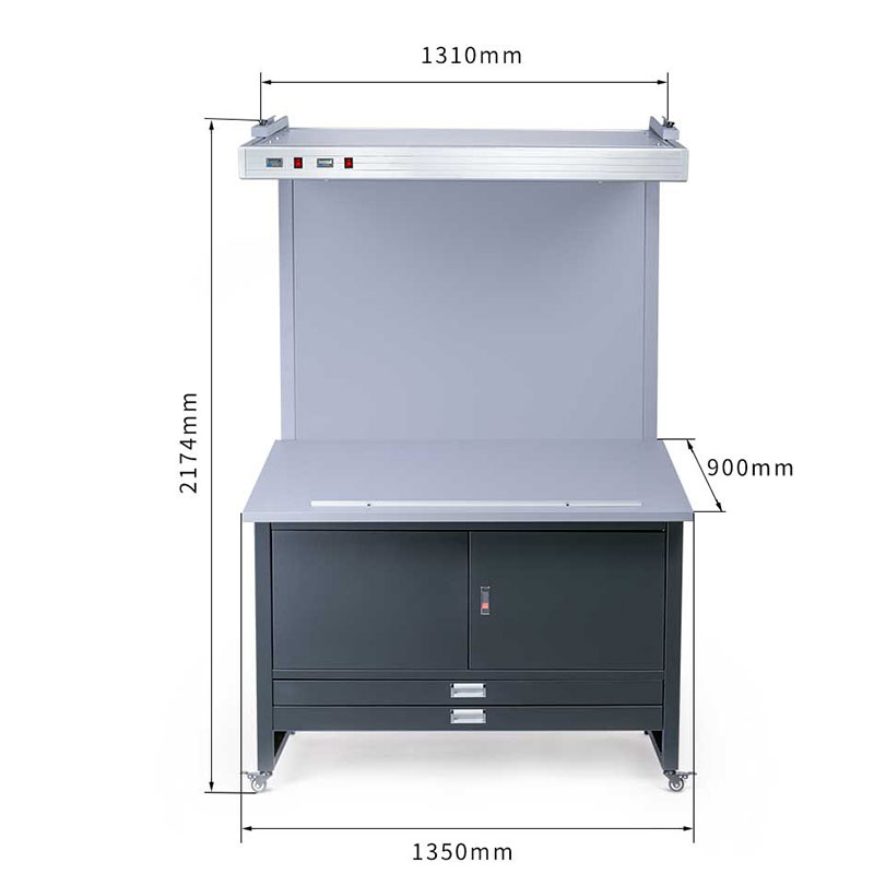 CC120看樣臺適合于環(huán)境要求高的印刷,包裝車間或打樣中心,美觀大方,膠印,柔印,凹印等印刷廠都能適用,可以直接看反射稿件。