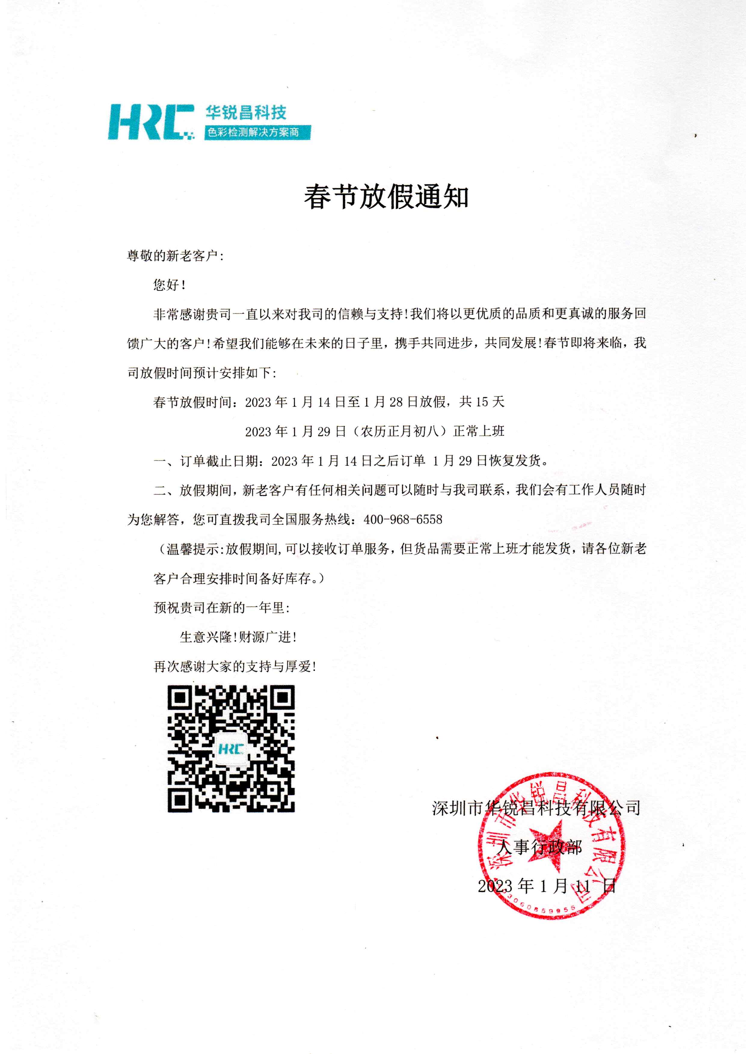 二、放假期間,新老客戶有任何相關問題可以隨時與我司聯系,我們會有工作人員隨時為您解答,您可直撥我司全國服務熱線:400-968-6558