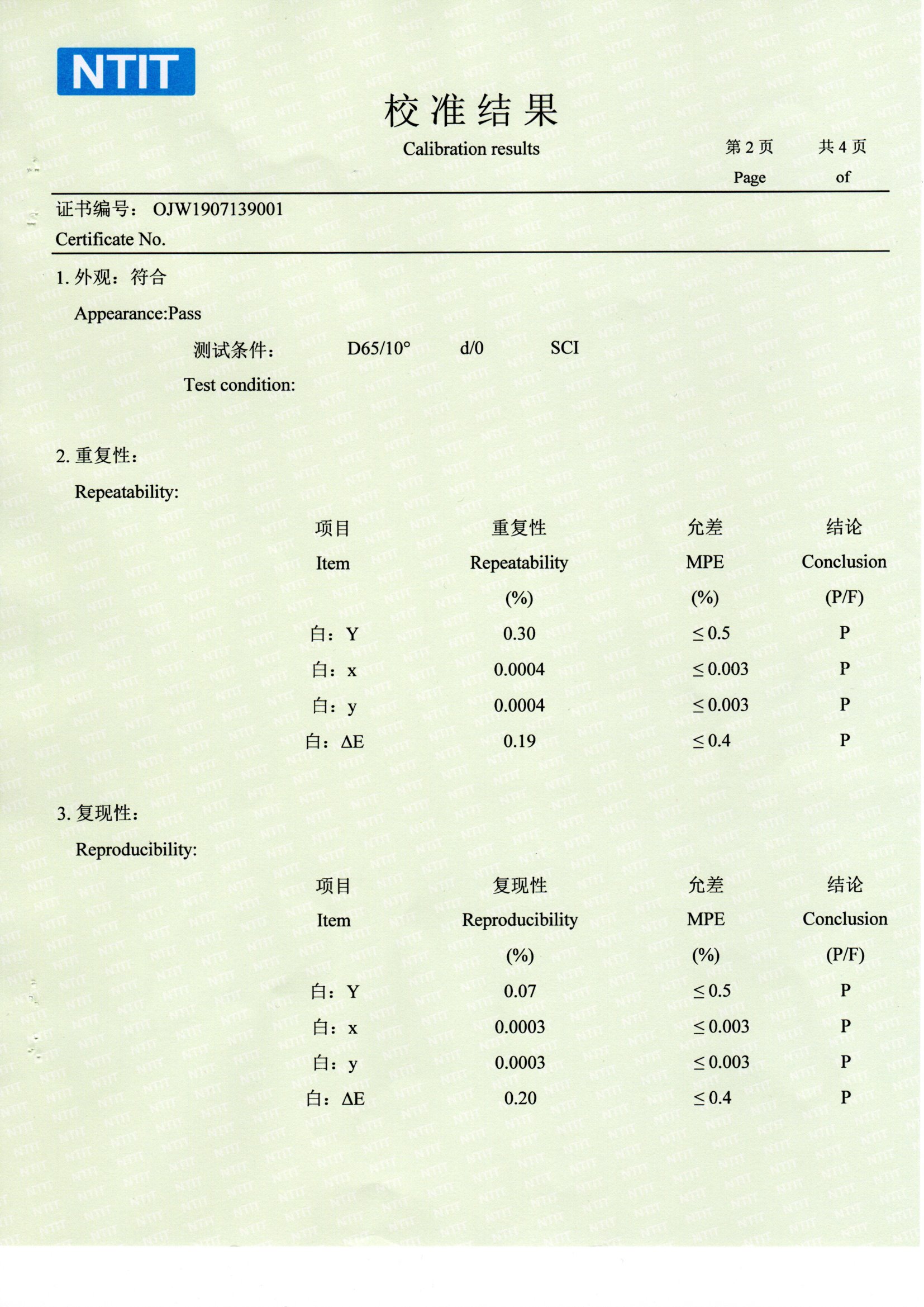 色差儀國家計量測試中心國檢檢測報告SCM CNAS NTIT校準證書。